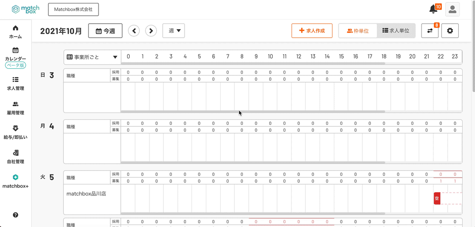 また、カレンダー内に表示されるシフトを枠単位・求人単位に変更できます。